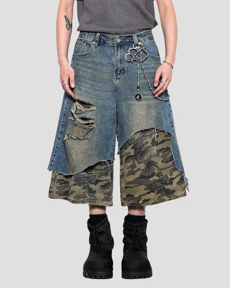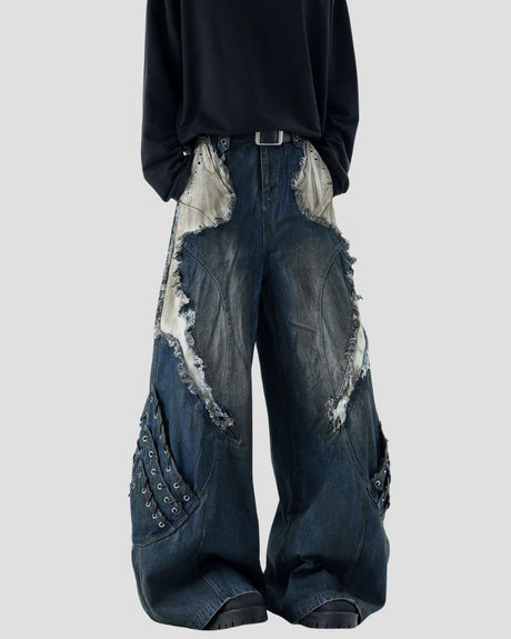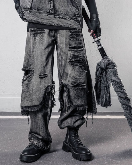 HEAVY-DISTRESSED DOUBLE-LAYER DENIM GRY
