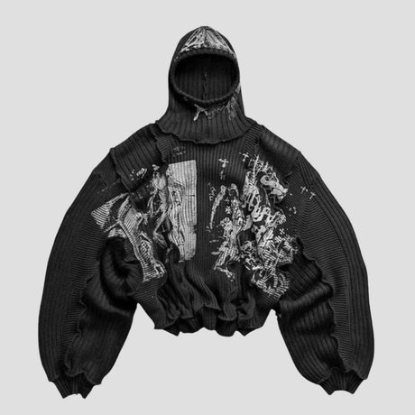 DISTRESSED KNIT OVERSIZED SWEATER BLK